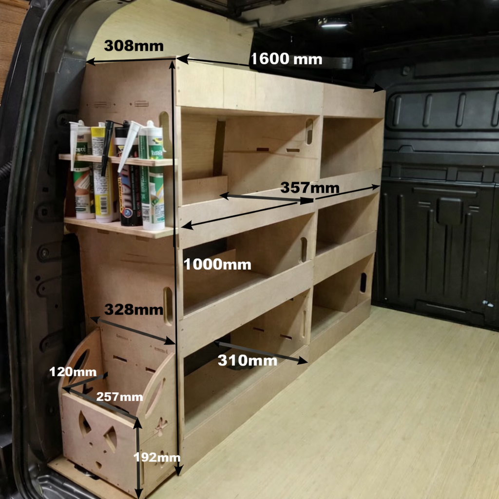 2x Rear drawers: 500 mm (W) × 1000 mm (L)